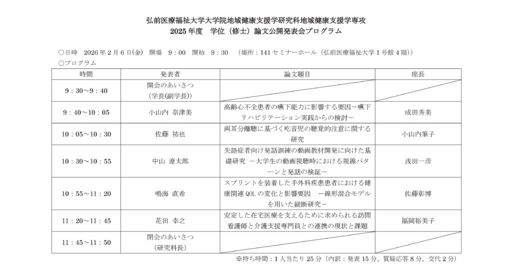 以下のとおり2025年度 学位(修士)論文公開発表会を開催いたします。