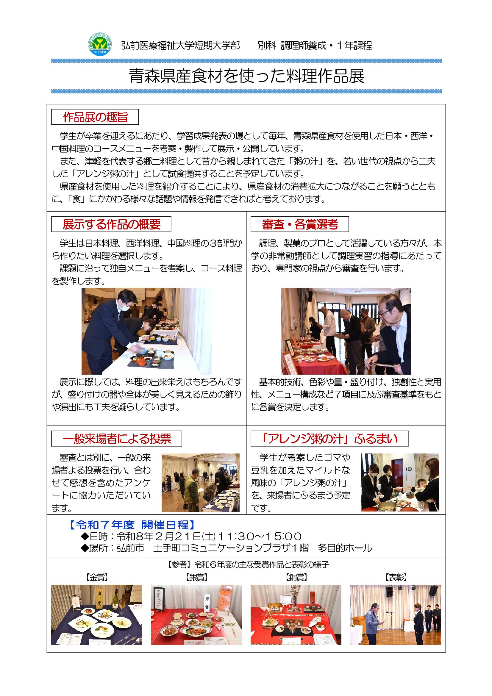 尚、この料理作品展は令和7年度大学コンソーシアム学都ひろさき活性化支援事業費補助金対象事業となっています。