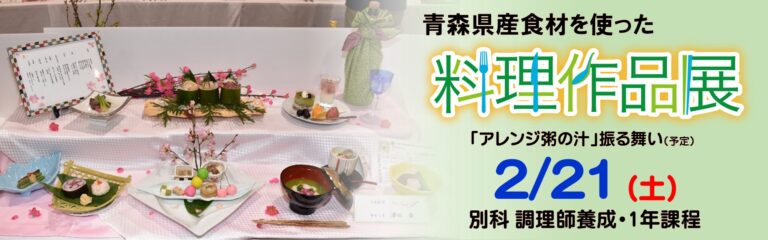 学生が卒業を迎えるにあたり、学習成果発表の場として毎年、青森県産食材を使用した日本・西洋・中国料理のコースメニューを考案・製作して展示・公開しています。