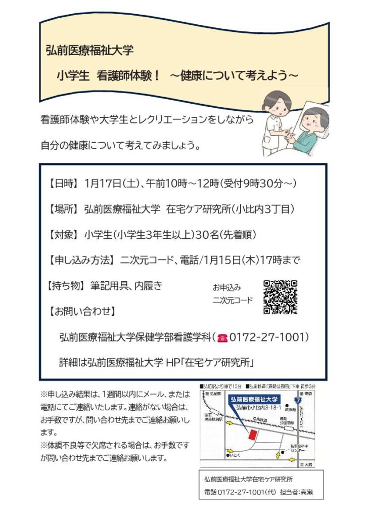 「弘前医療福祉福祉大学 小学生 看護師体験! ~健康について考えよう~」